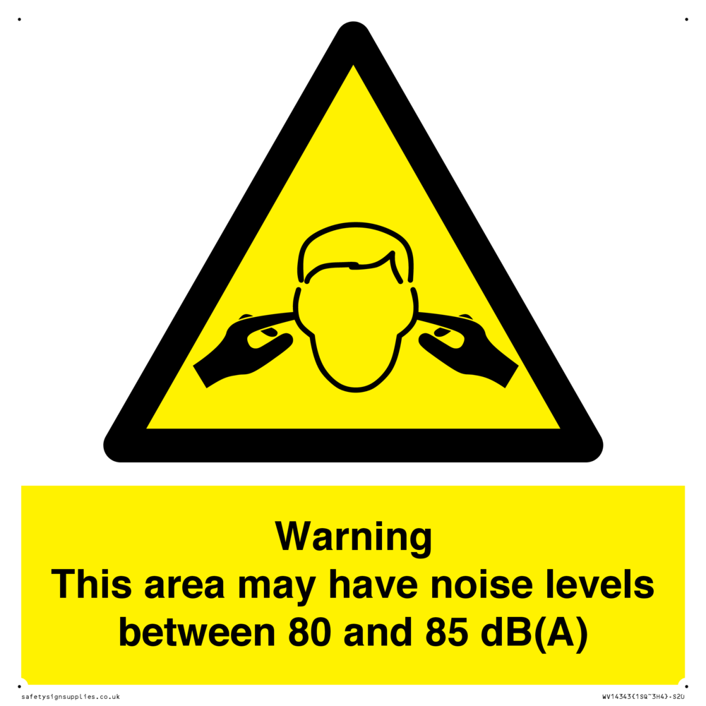 Sign Text: Warning This area may have noise levels between 80 and 85 dB(A)