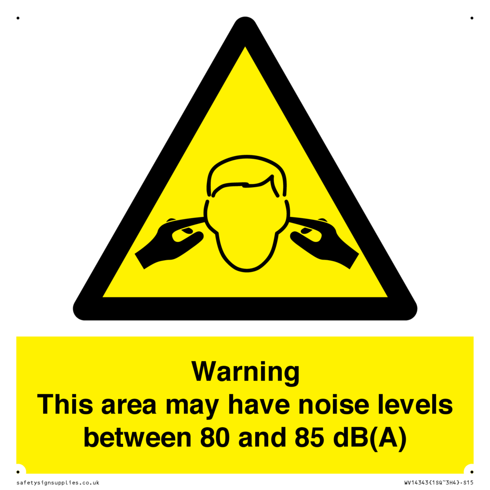 Sign Text: Warning This area may have noise levels between 80 and 85 dB(A)