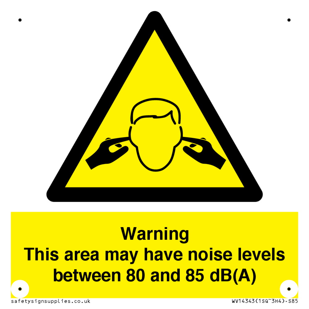 Sign Text: Warning This area may have noise levels between 80 and 85 dB(A)
