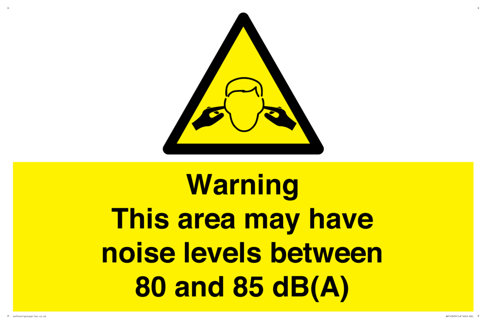 Sign Text: Warning This area may have noise levels between 80 and 85 dB(A)