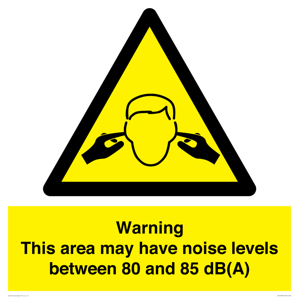 Sign Text: Warning This area may have noise levels between 80 and 85 dB(A)