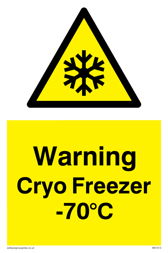 This signs contains a low temperature warning symbol. Snowflake symbol in black