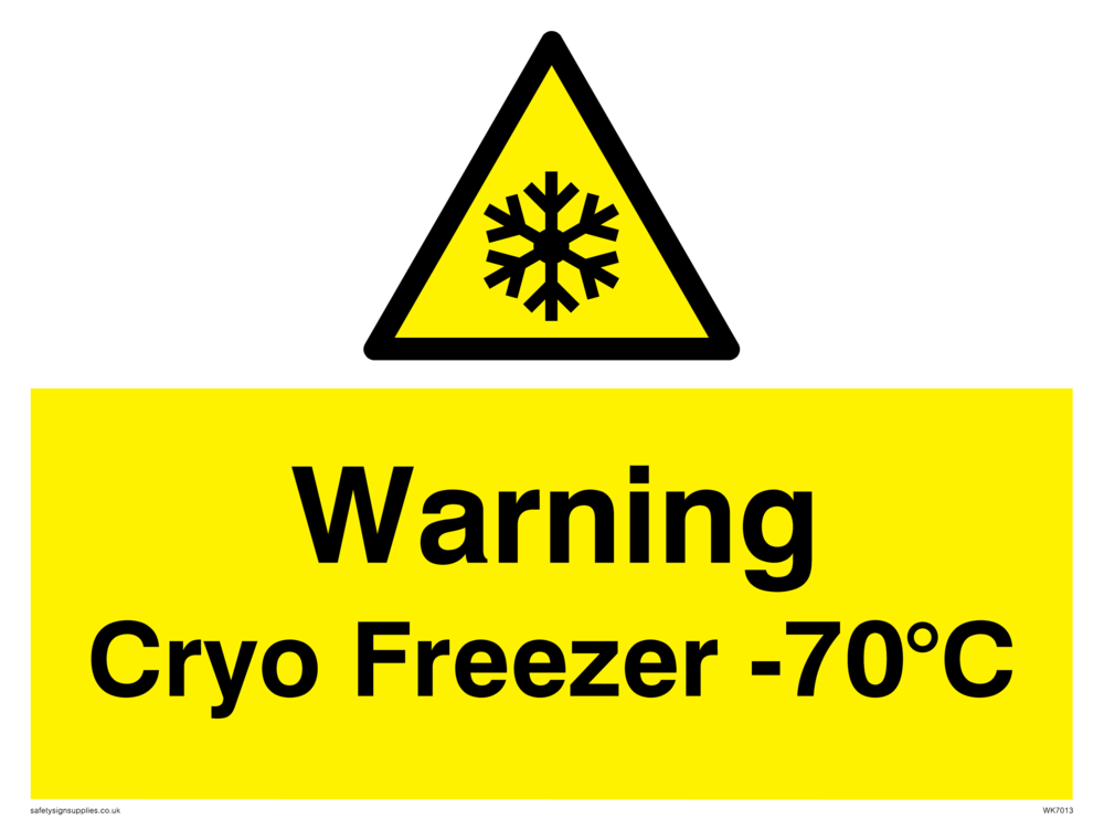 This signs contains a low temperature warning symbol. Snowflake symbol in black
