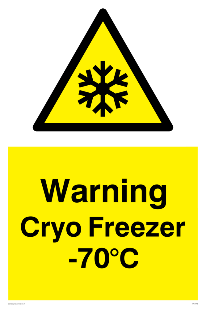 This signs contains a low temperature warning symbol. Snowflake symbol in black