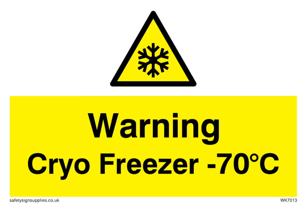 This signs contains a low temperature warning symbol. Snowflake symbol in black