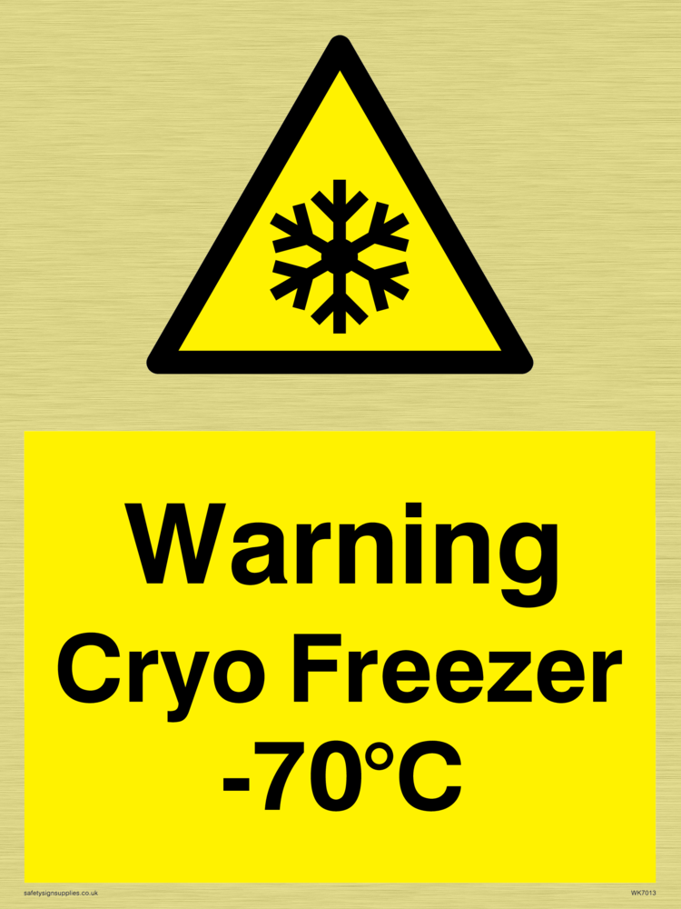 This signs contains a low temperature warning symbol. Snowflake symbol in black