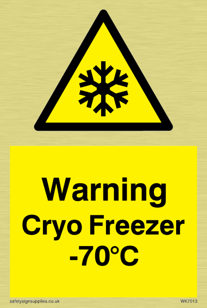 This signs contains a low temperature warning symbol. Snowflake symbol in black