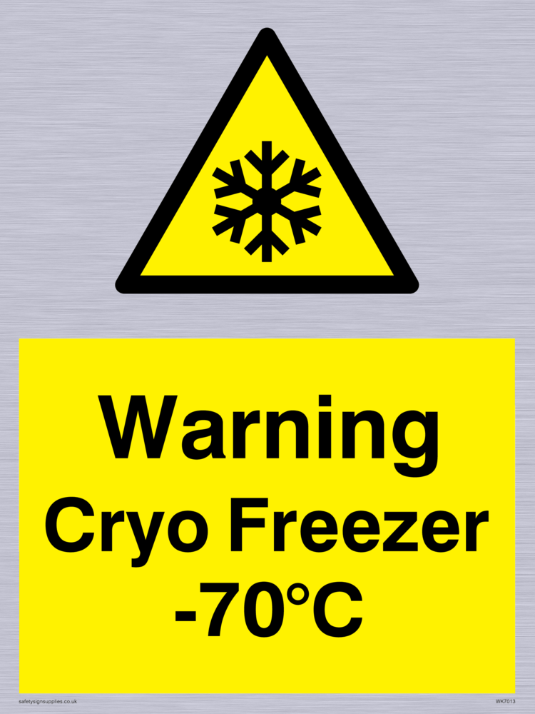 This signs contains a low temperature warning symbol. Snowflake symbol in black