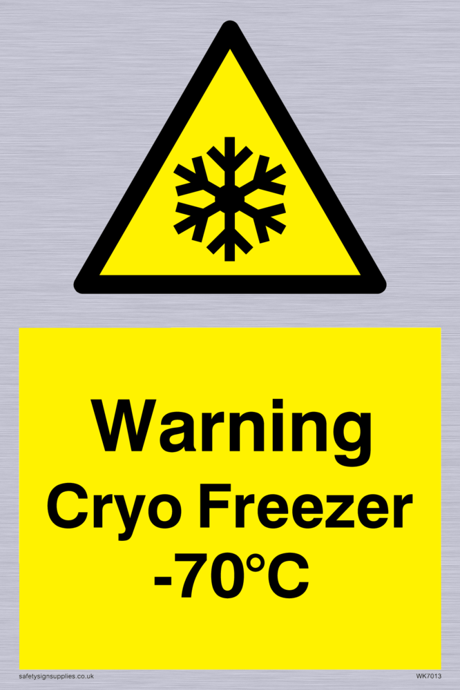This signs contains a low temperature warning symbol. Snowflake symbol in black