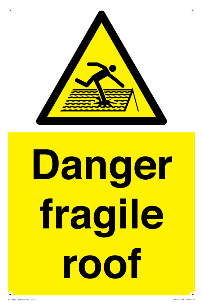 Sign Text: Danger fragile roof