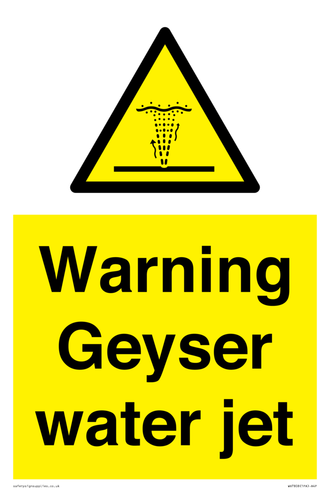 Sign Text: Warning Geyser water jet
