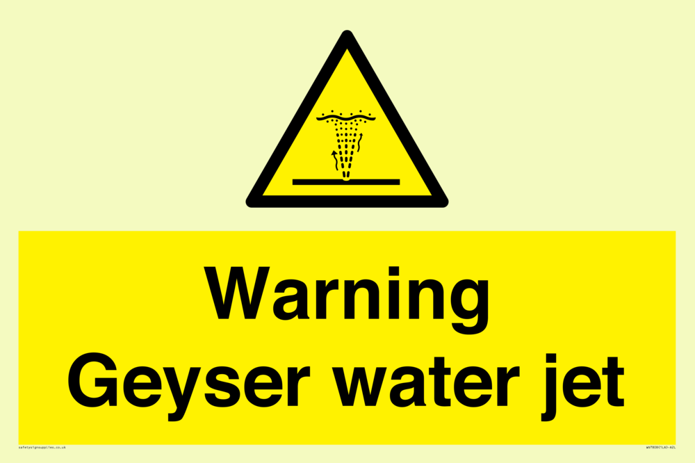 Sign Text: Warning Geyser water jet
