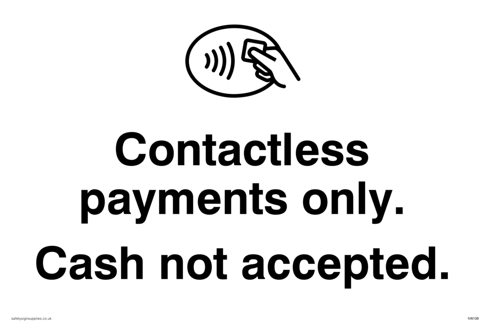 Sign Text: Contactless Payments only. Cash not accepted.