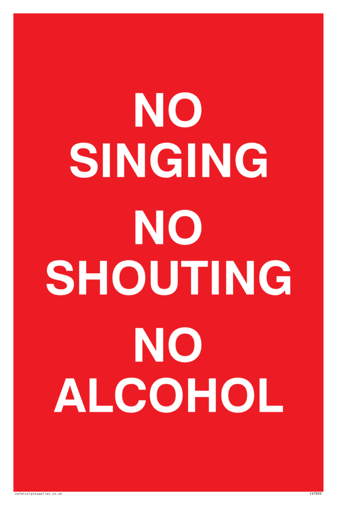 Sign Text: NO SINGING NO SHOUTING NO ALCOHOL