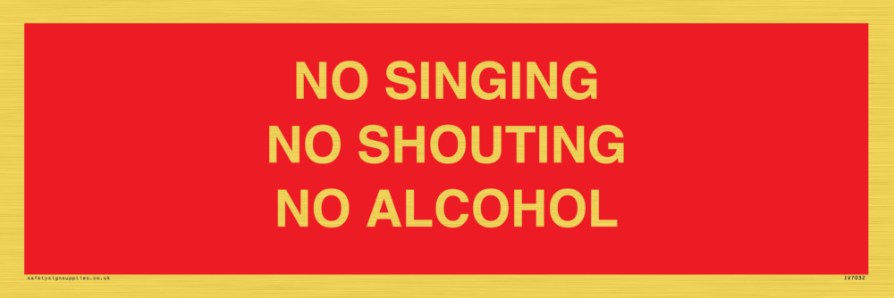 Sign Text: NO SINGING NO SHOUTING NO ALCOHOL