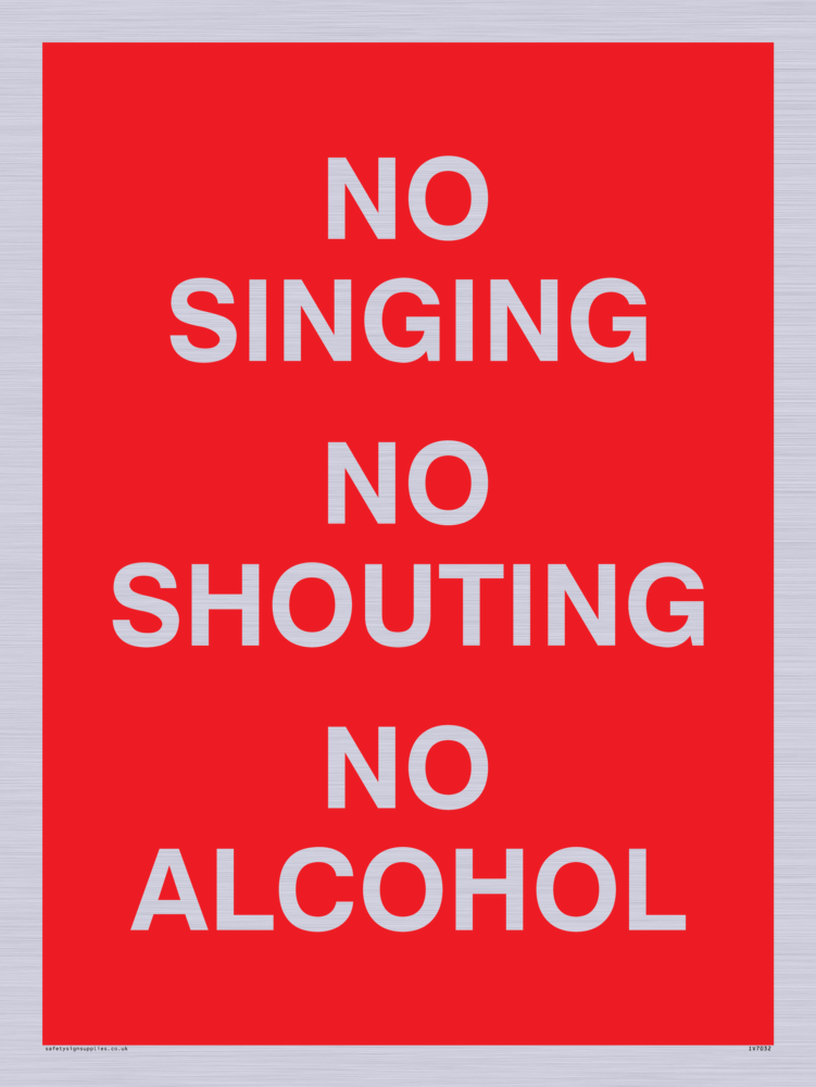 Sign Text: NO SINGING NO SHOUTING NO ALCOHOL