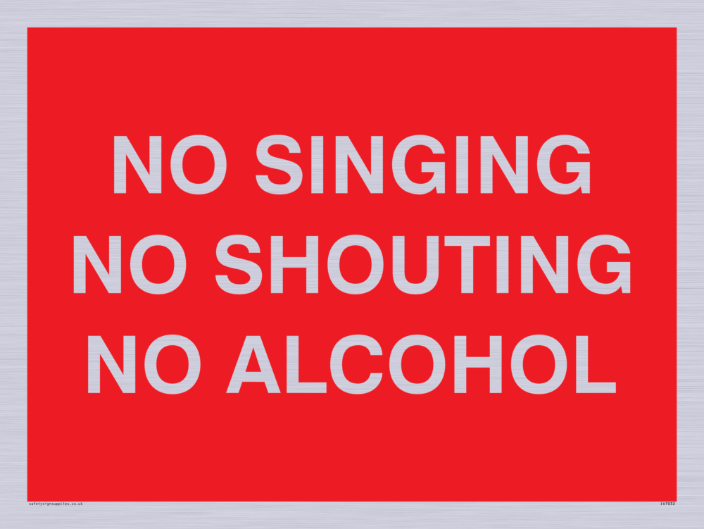 Sign Text: NO SINGING NO SHOUTING NO ALCOHOL