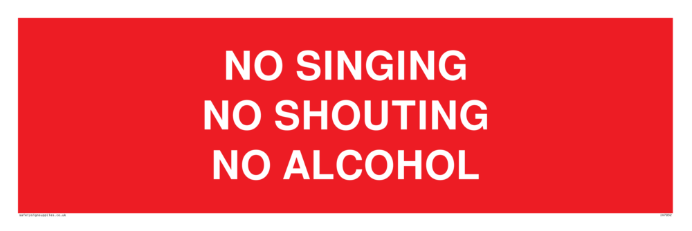 Sign Text: NO SINGING NO SHOUTING NO ALCOHOL