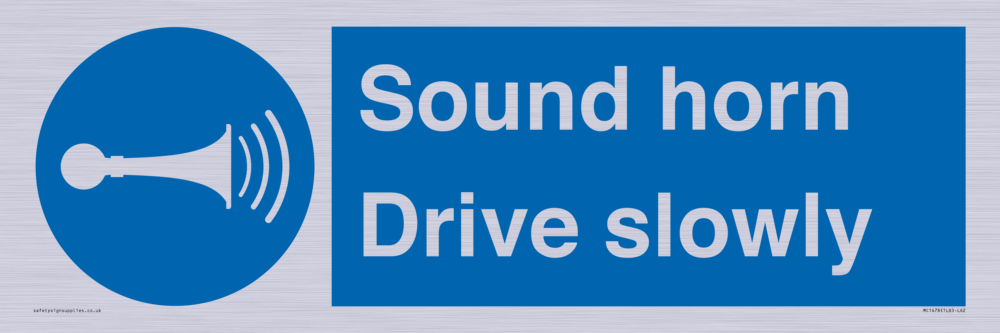 Sound horn Drive slowly, warehousing and delivery sign.