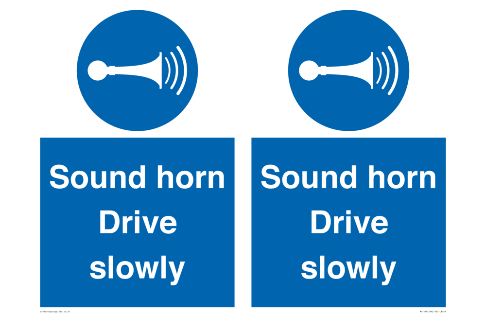 Sound horn Drive slowly, warehousing and delivery sign.