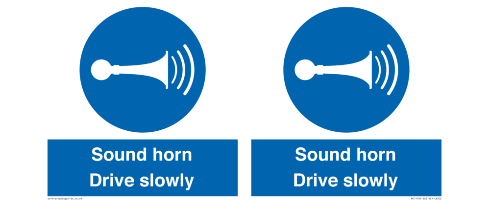 Sound horn Drive slowly, warehousing and delivery sign.