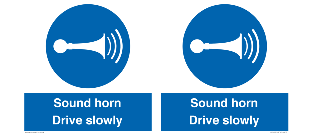 Sound horn Drive slowly, warehousing and delivery sign.