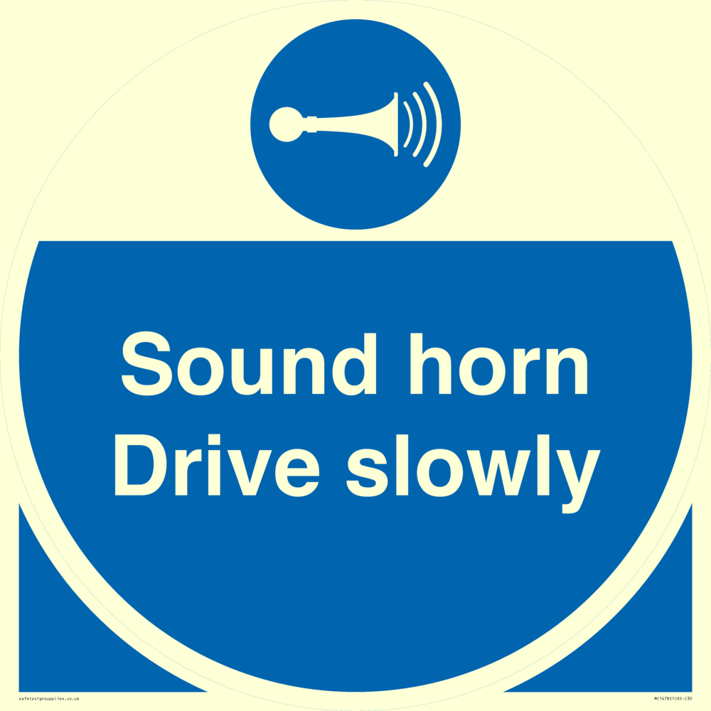 Sound horn Drive slowly, warehousing and delivery sign.