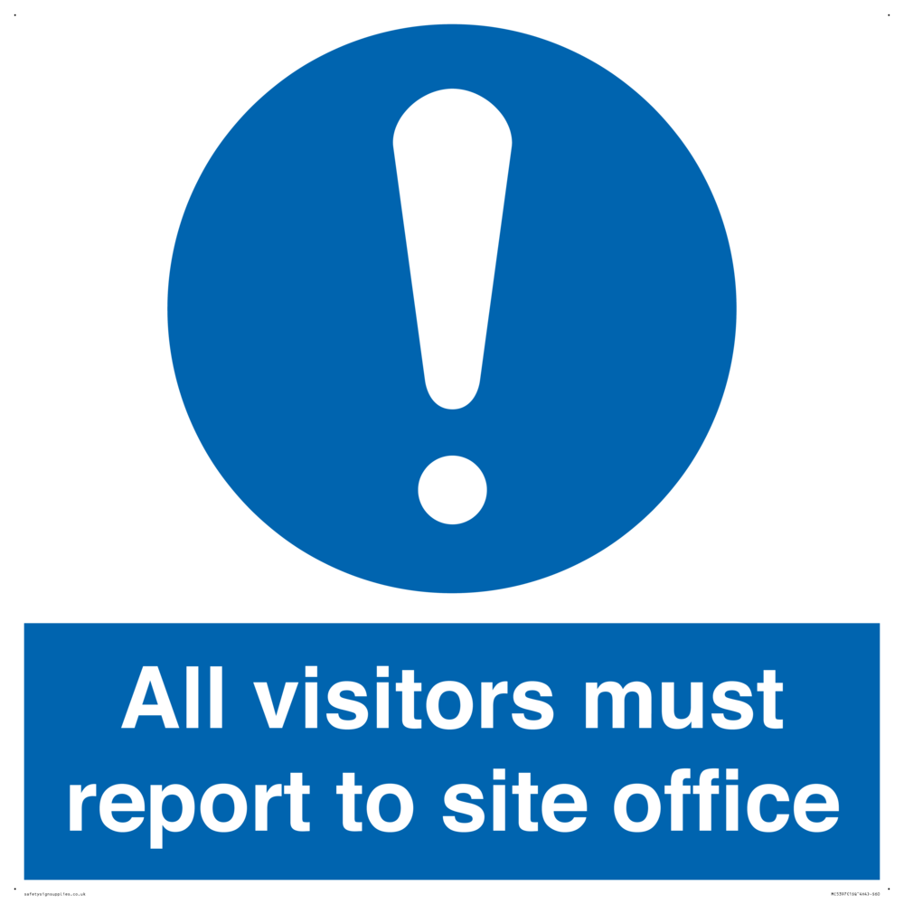 All visitors report to site office with eneral mandatory symbol