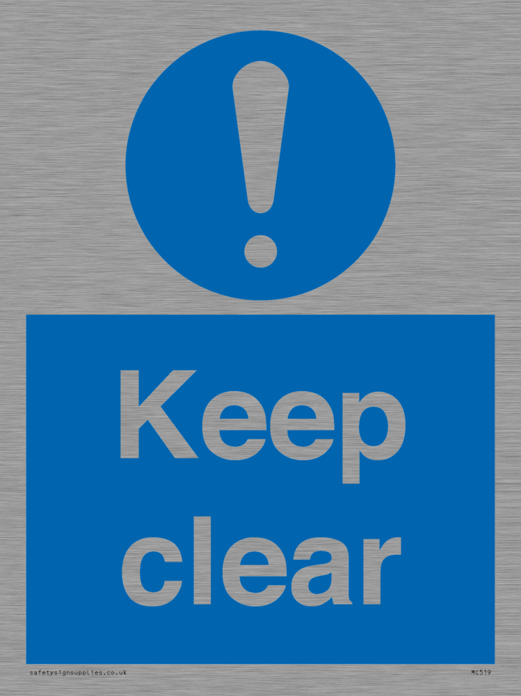 This sign contains a general Mandatory Exclamation Symbol - exclamation mark in white on blue circle background.