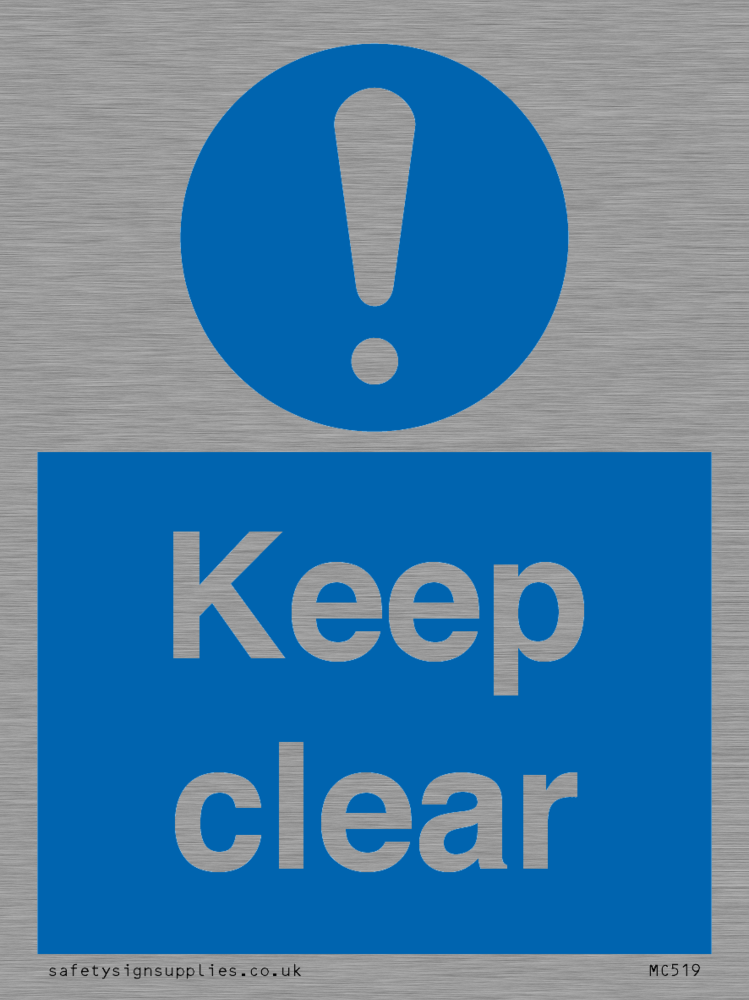 This sign contains a general Mandatory Exclamation Symbol - exclamation mark in white on blue circle background.