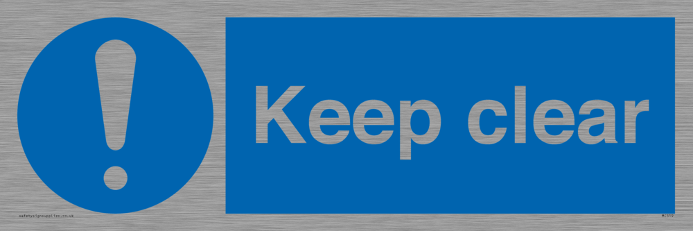 This sign contains a general Mandatory Exclamation Symbol - exclamation mark in white on blue circle background.