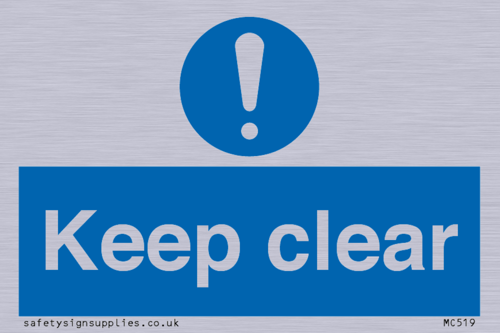 This sign contains a general Mandatory Exclamation Symbol - exclamation mark in white on blue circle background.