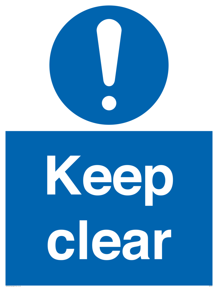 This sign contains a general Mandatory Exclamation Symbol - exclamation mark in white on blue circle background.