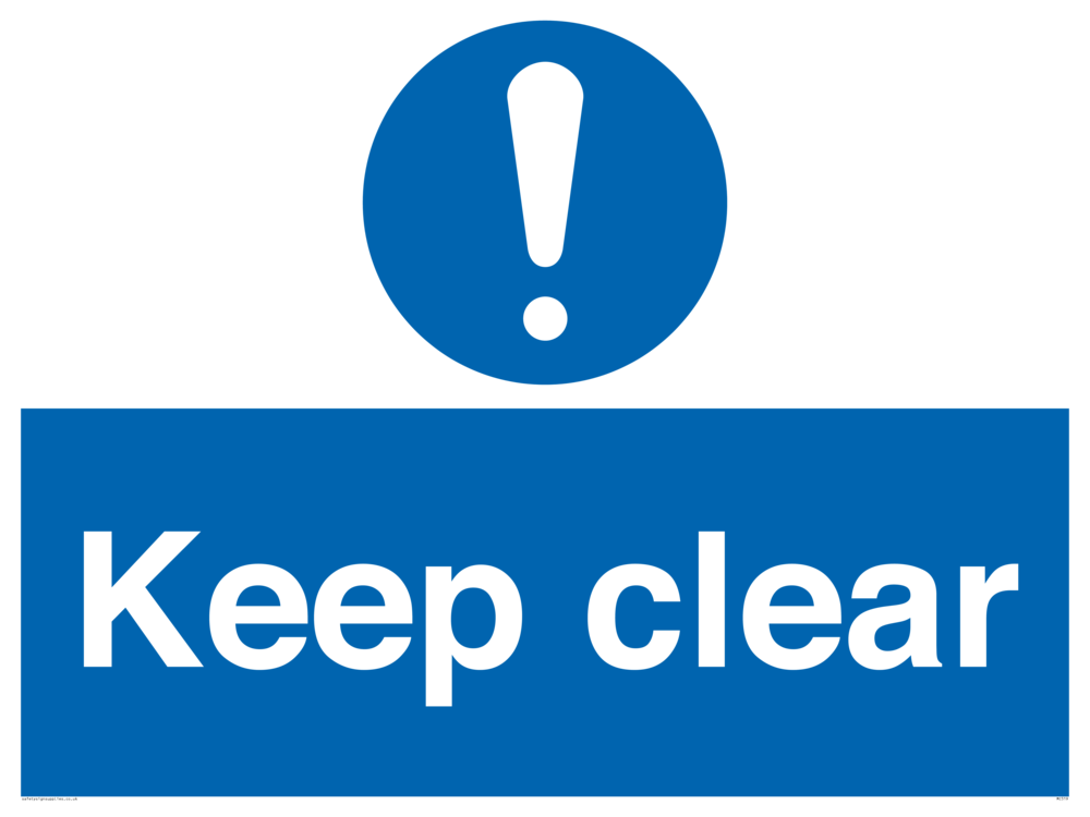 This sign contains a general Mandatory Exclamation Symbol - exclamation mark in white on blue circle background.