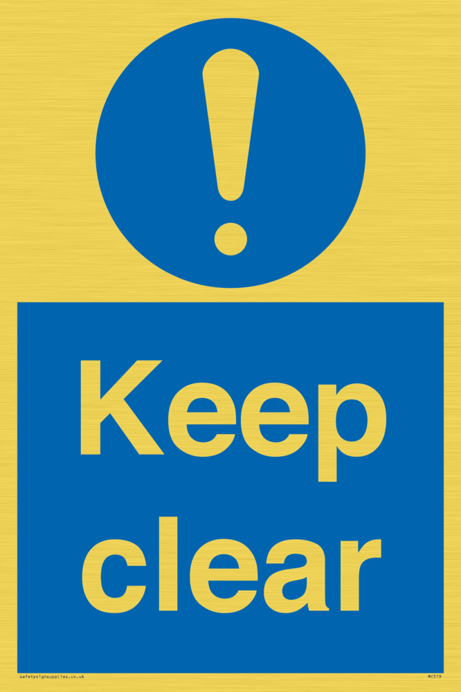 This sign contains a general Mandatory Exclamation Symbol - exclamation mark in white on blue circle background.