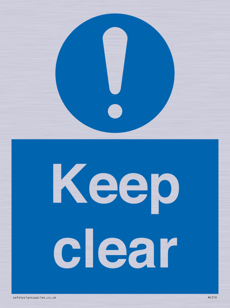 This sign contains a general Mandatory Exclamation Symbol - exclamation mark in white on blue circle background.