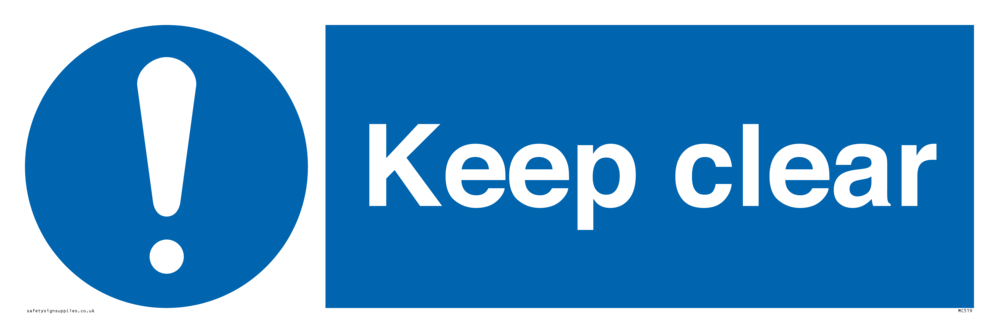 This sign contains a general Mandatory Exclamation Symbol - exclamation mark in white on blue circle background.