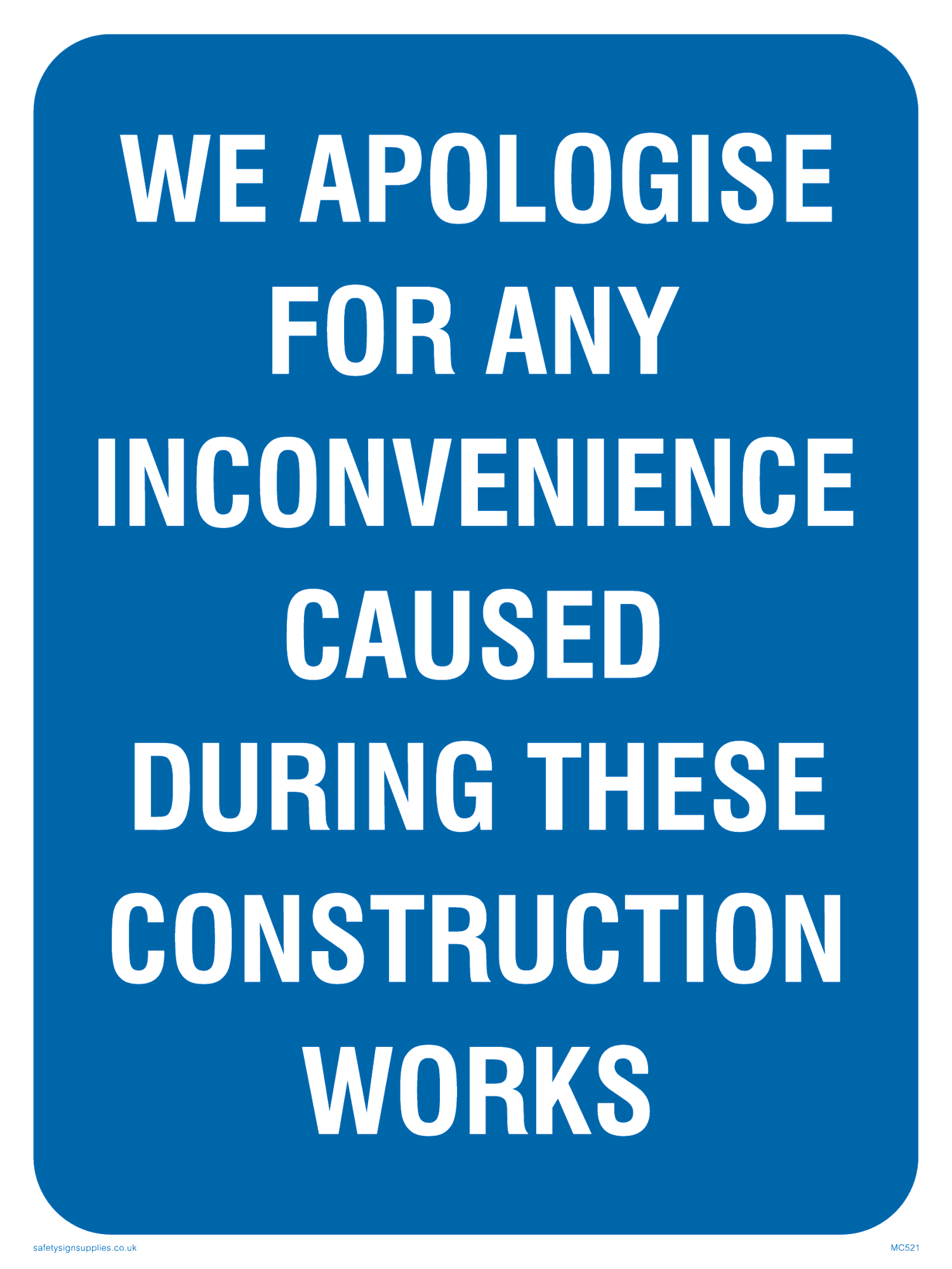 Sign Text: We apologise for any inconvenience caused during these construction works