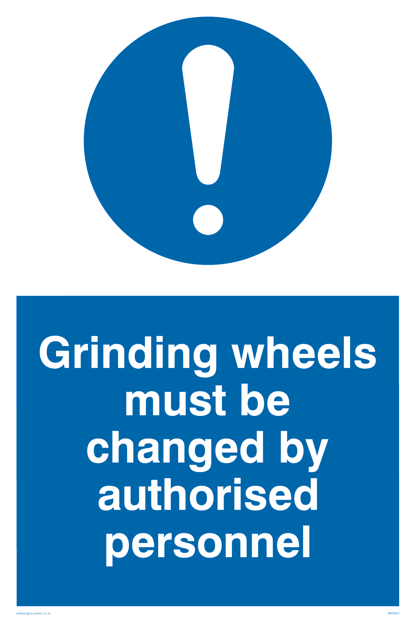 This sign contains a general Mandatory Exclamation Symbol - exclamation mark in white on blue circle background.