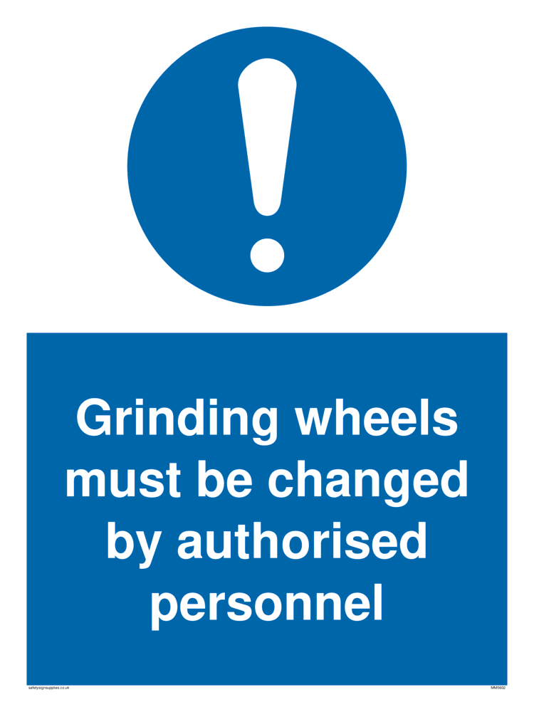 This sign contains a general Mandatory Exclamation Symbol - exclamation mark in white on blue circle background.