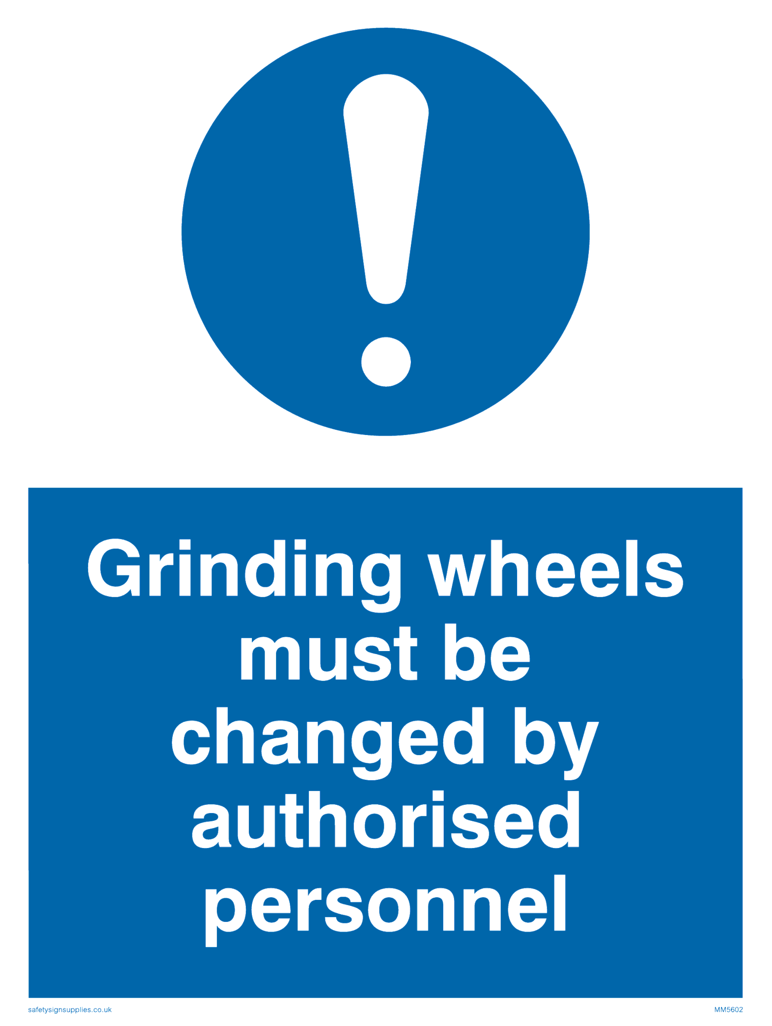This sign contains a general Mandatory Exclamation Symbol - exclamation mark in white on blue circle background.