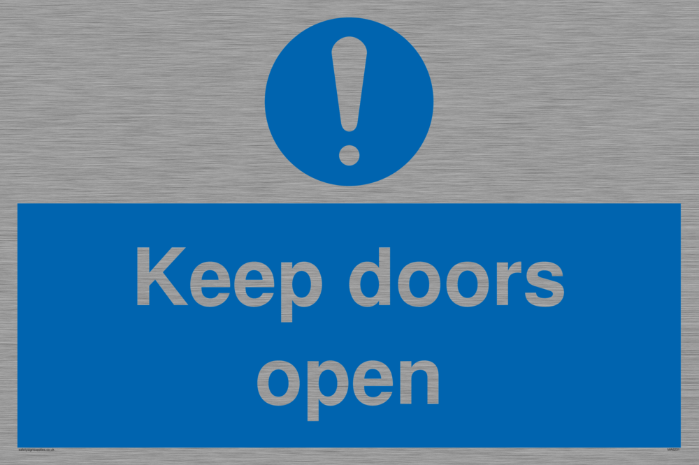 This sign contains a general Mandatory Exclamation Symbol - exclamation mark in white on blue circle background.