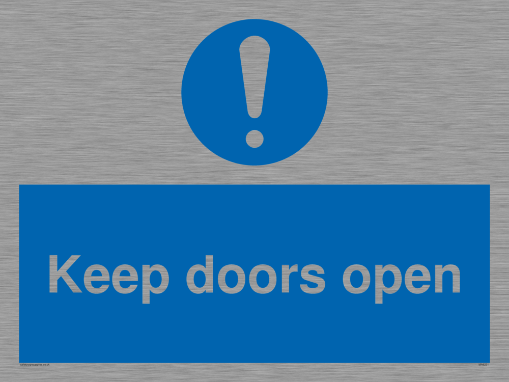 This sign contains a general Mandatory Exclamation Symbol - exclamation mark in white on blue circle background.