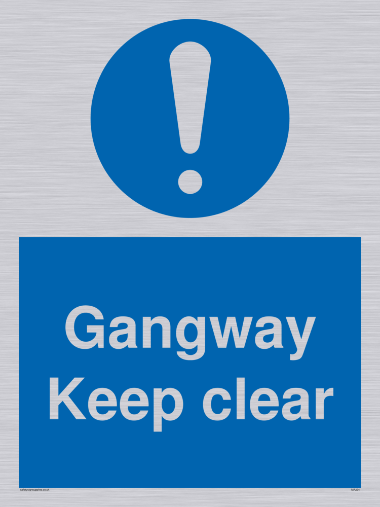 This sign contains a general Mandatory Exclamation Symbol - exclamation mark in white on blue circle background.