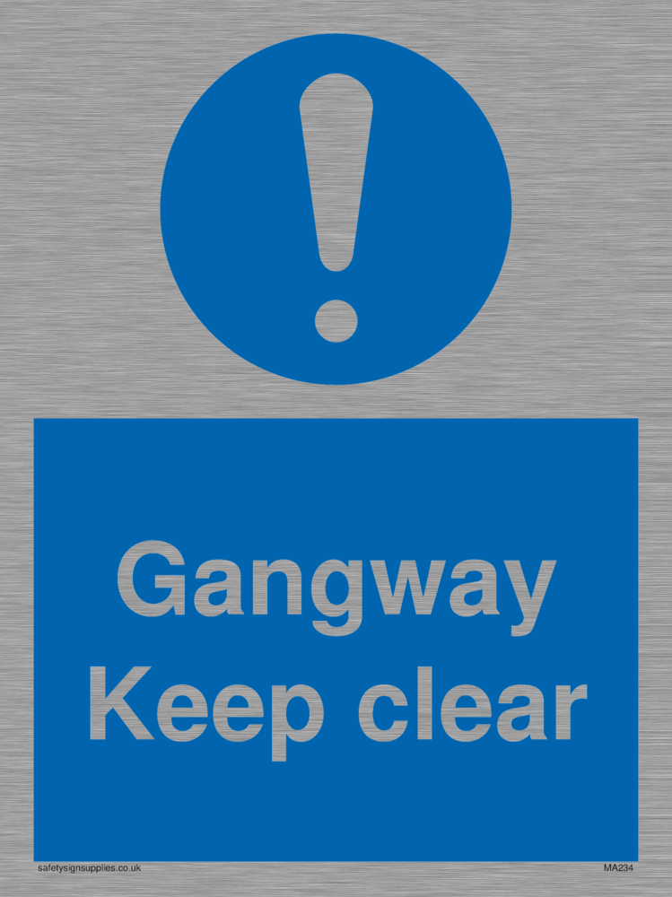 This sign contains a general Mandatory Exclamation Symbol - exclamation mark in white on blue circle background.