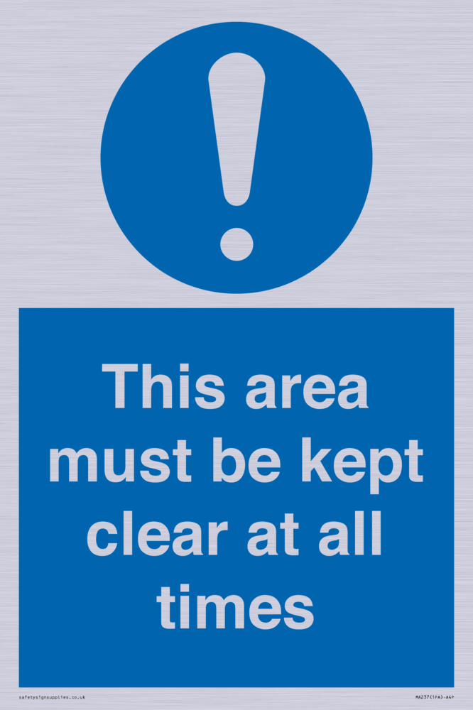 this area must be kept clear at all times