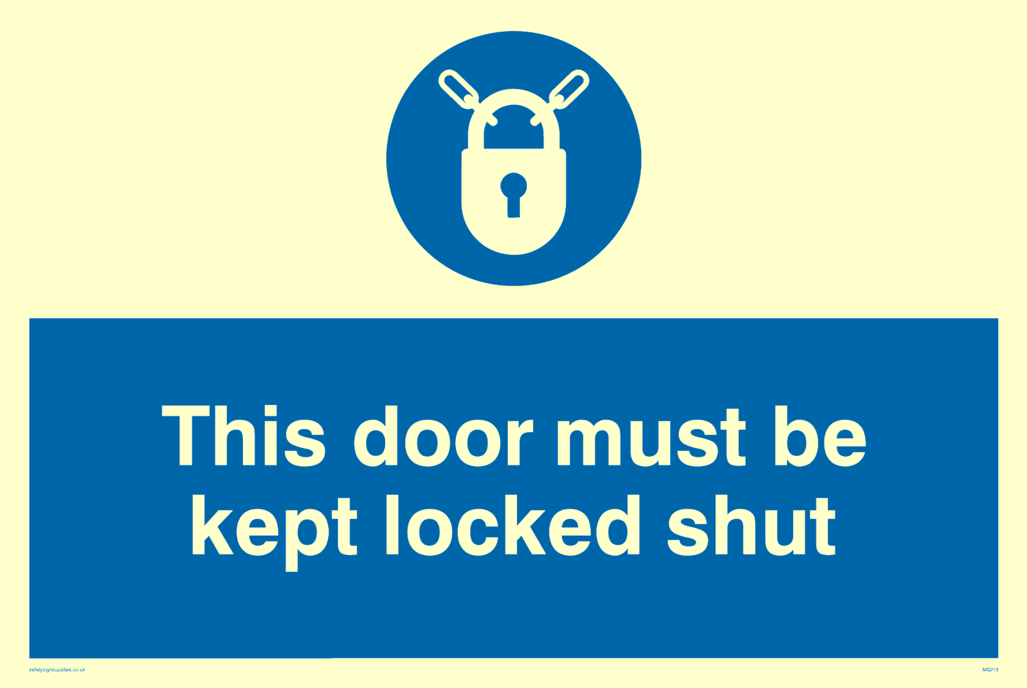 This sign contains a lock required symbol. Padlock in white within a blue circle.