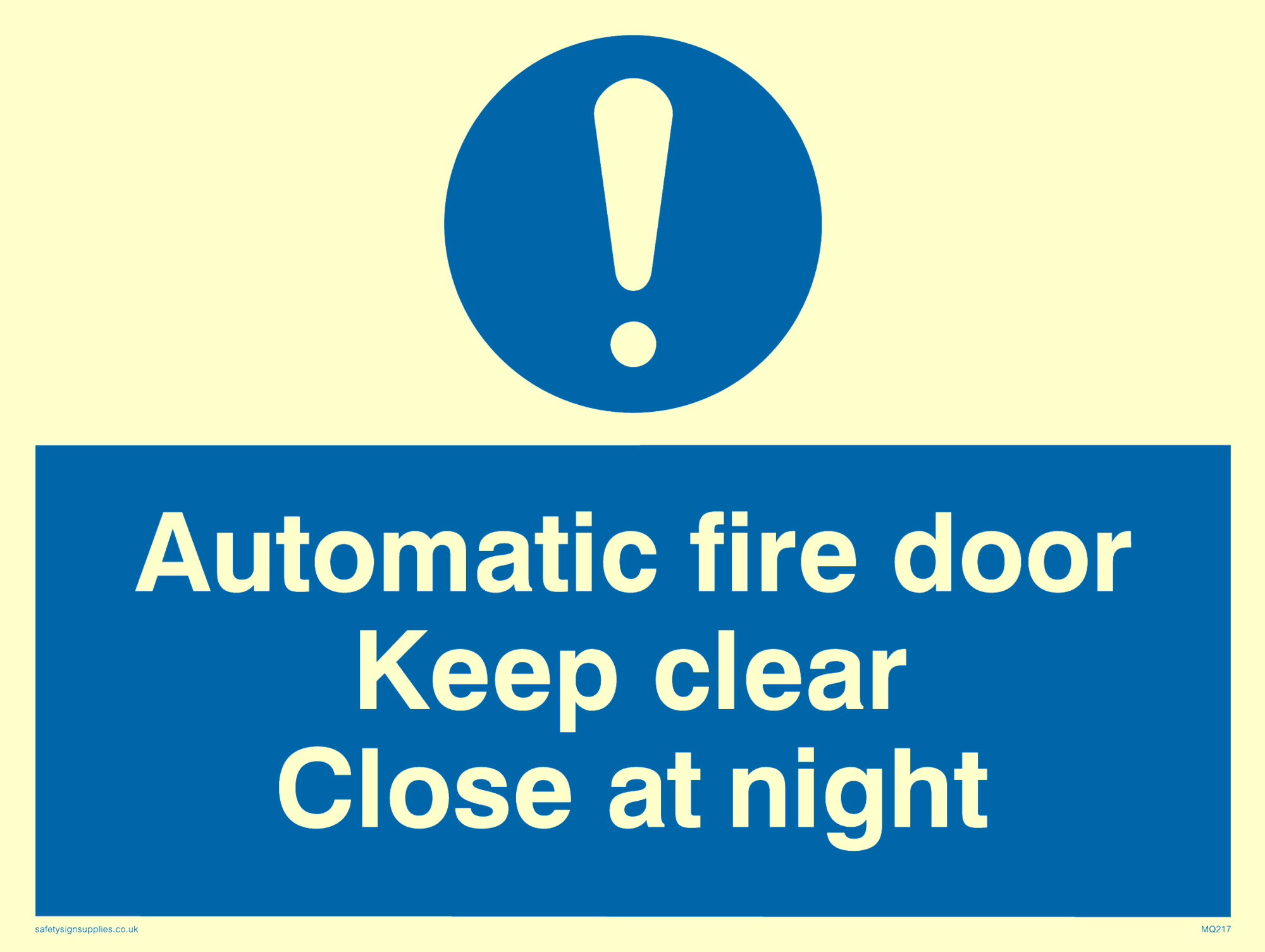 Sign Text: Automatic fire door keep clear close at night