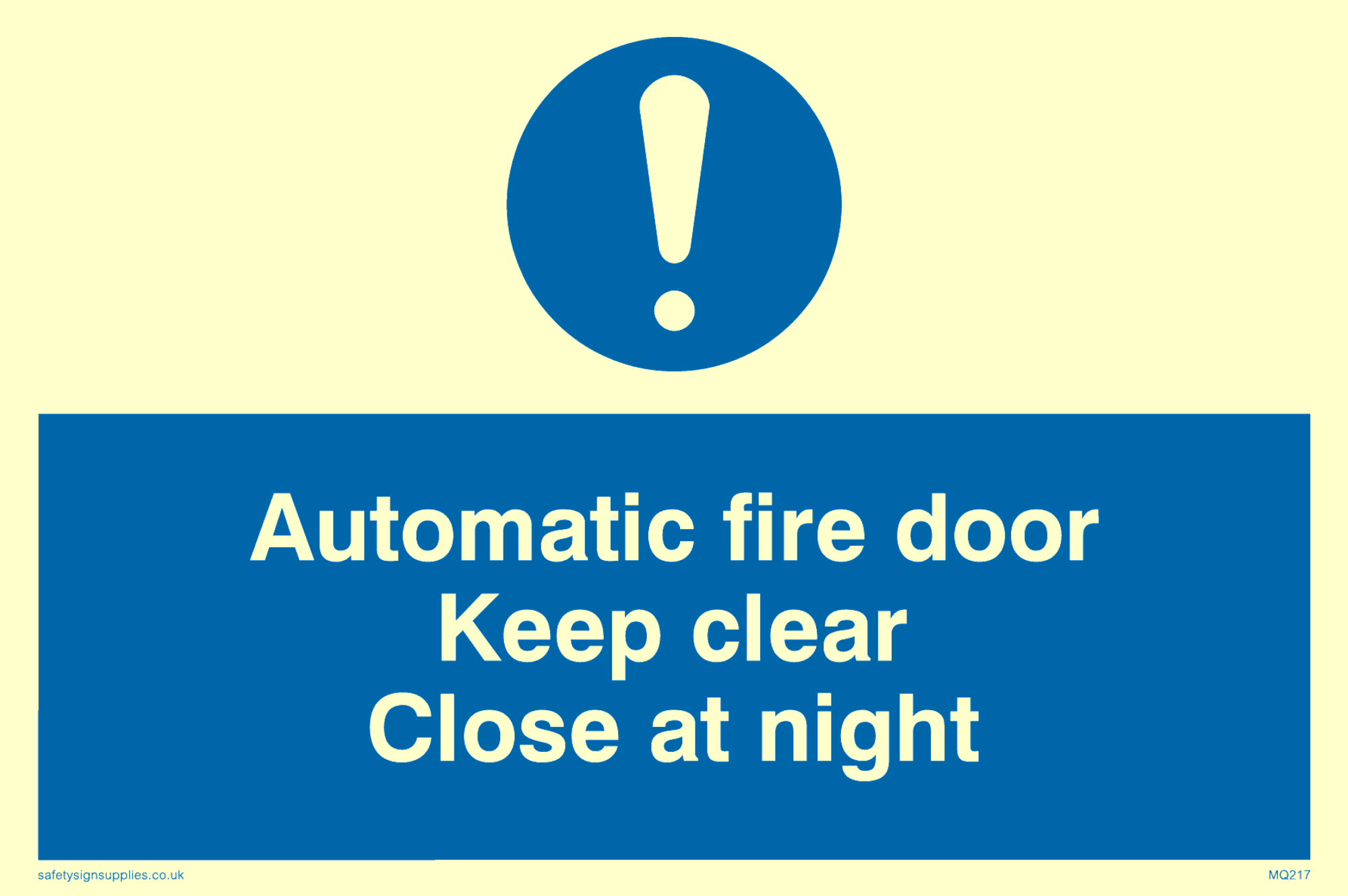 Sign Text: Automatic fire door keep clear close at night