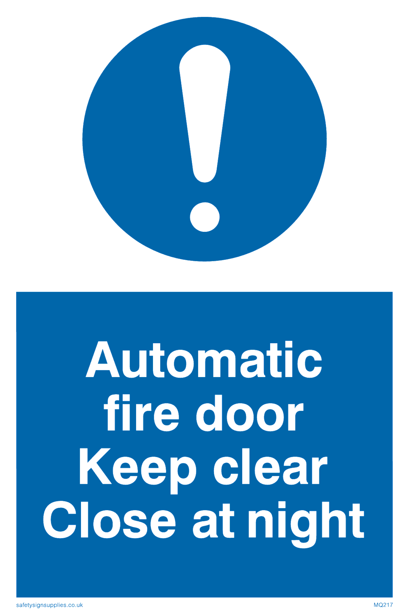 Sign Text: Automatic fire door keep clear close at night
